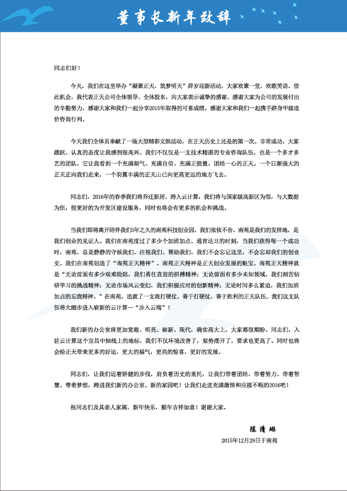 董事长致辞
