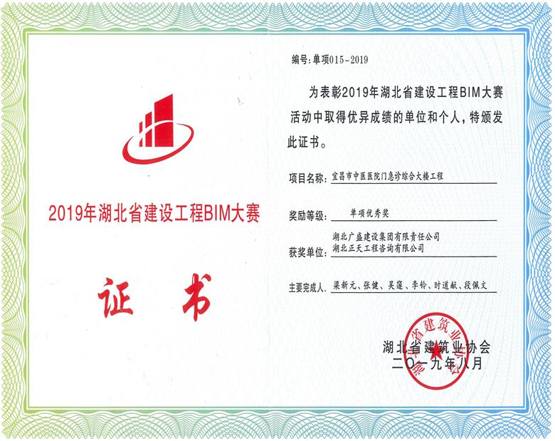 湖北省建设mk国际体育_MK中国一站式体育服务BIM大赛单项优秀奖