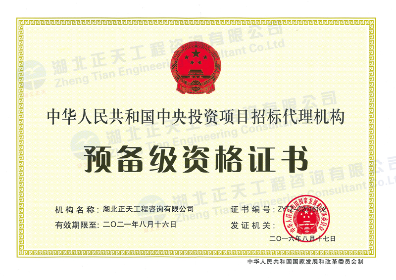 中央投资项目招标代理机构资格证书