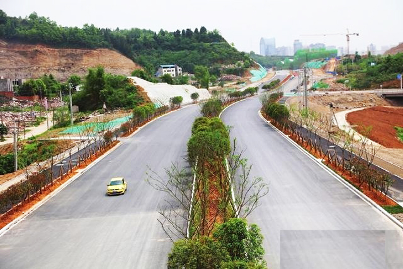江城大道~江南二路路段道路全长1734.86米,其中桥边河大桥长156.212米;江南二路~南站支路路段道路全长1532.98米。